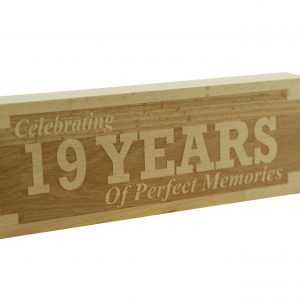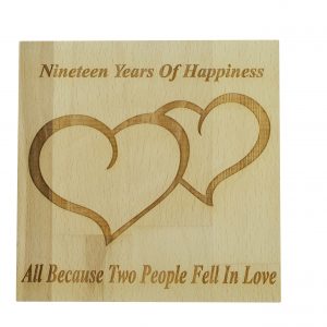 For a chic natural design why not check out our ‘19 Years We Made A Family – Beech Block’, this beech block has inscribed at the bottom ‘19 Years – We Made A Family’, in the middle of the block is a laser engraved fully custom-made silhouette. Just let us know how many adults and children you need and the genders of all and we can ensure your product is one-of-a-kind to your family.