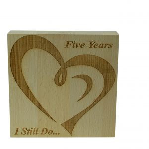 Mark your fifth anniversary with any of our natural beech products. Why not express how happy you have been in your 5 years together with the ‘5 Years of Happiness Beech Block’. The neutral tones of this design make the ornament a perfect addition to any room, and will compliment other wooden décor.