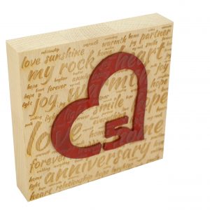 Commemorate every day, week, month and year spent loving your spouse with our wooden collage of phrases ‘5 Years of Loving You Wooden Block’. This would go great as a centre piece around framed photos of your years together, or standing alone to stand out.