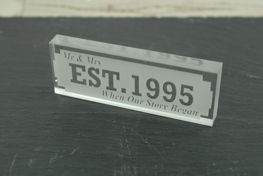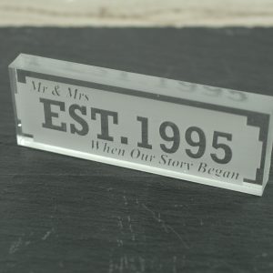 Celebrate the year of your marriage and reminisce back to your wedding with our Mr & Mrs Established 1995 “When Our Story Began” ornament.