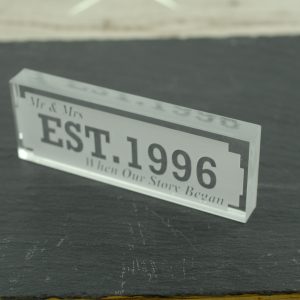 Celebrate the year of your marriage and reminisce back to your wedding with our Mr & Mrs Established 1996 “When Our Story Began” ornament.