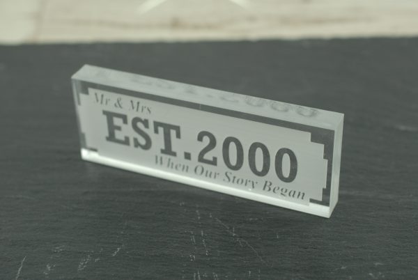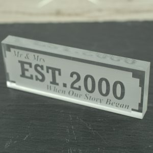 Celebrate the year of your marriage and reminisce back to your wedding with our Mr & Mrs Established 2000 “When Our Story Began” ornament.