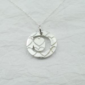 The pendant is 20mm x 20mm and arrives on an 18″ sterling silver chain.