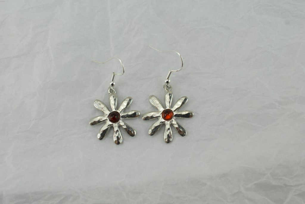 You could purchase this with the matching ‘Amber Tin Flower Necklace‘ or as a set ‘Amber Tin Flower Set‘