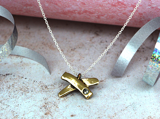 It’s a beautifully handmade pendant with a diamond embedded in the bottom right corner.