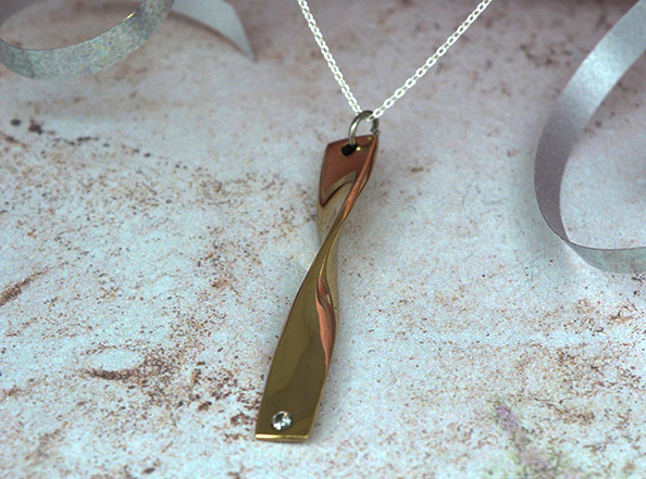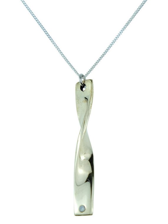 Our twisted pendant is a great modern design, with an effervescent diamond set at the bottom.