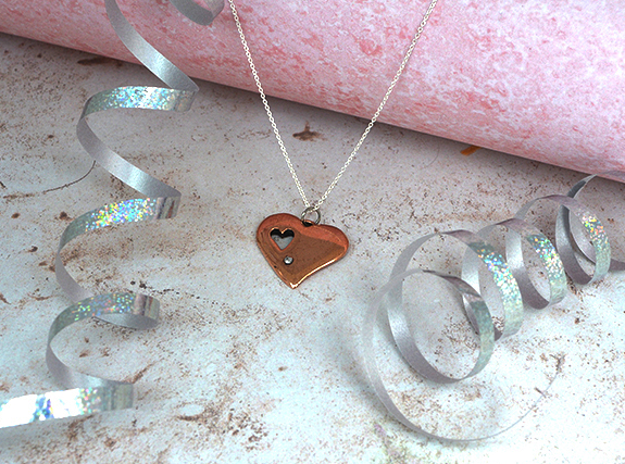 Our unique combination of tin and copper in a beautiful heart with a diamond set.
