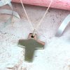 The pendant is 20mm x 20mm and is on an 18” sterling silver chain.