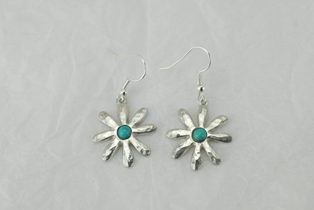 You could purchase this with the matching ‘Turquoise Tin Flower Necklace‘ or as a set ‘Turquoise Tin Flower Set‘