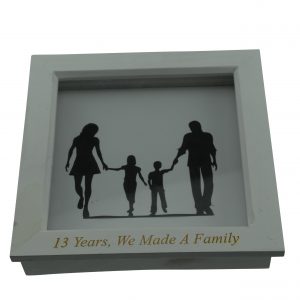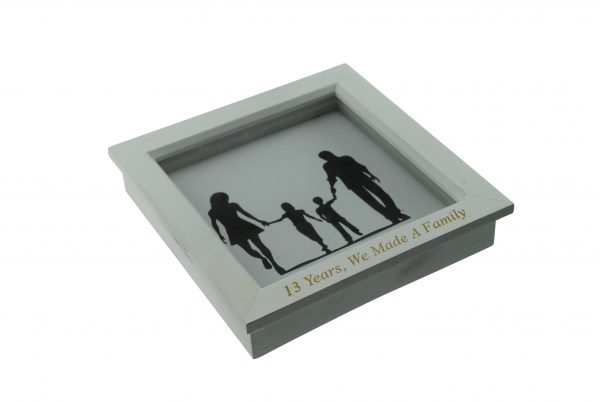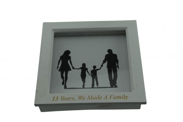 With our “13 Years, We Made A Family” white wooden frame you can celebrate your 13th Anniversary and mark this moment in your life.