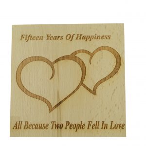 The scrapbook is bound with a quality wooden cover at the front and the back, the front cover has a heart cut out with the inscription laser engraved “Fifteen Years, Our Story So Far”.