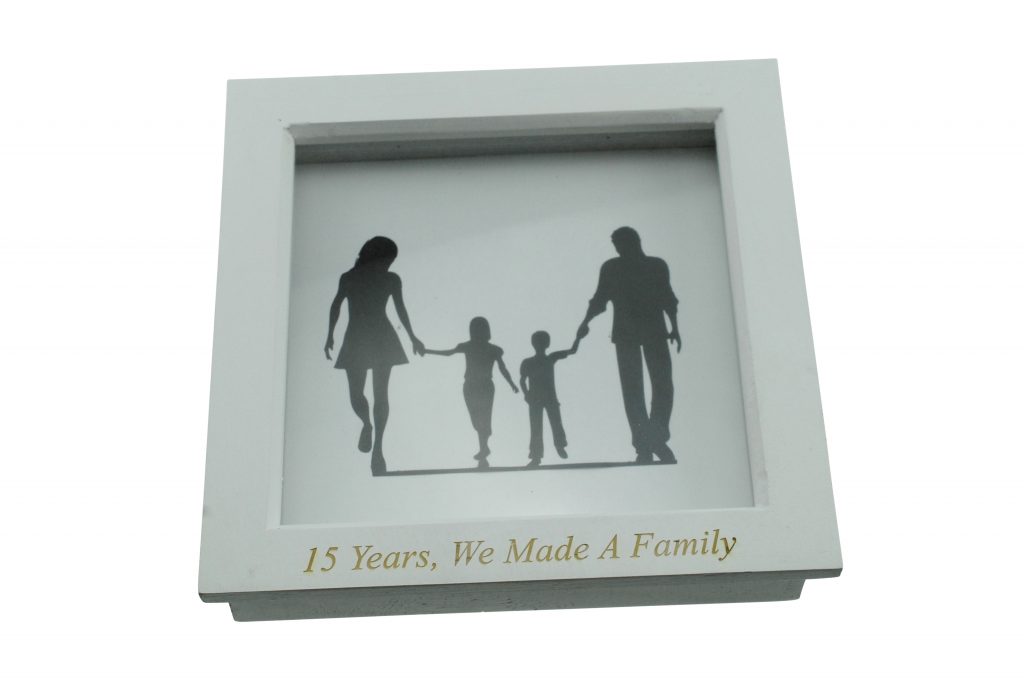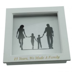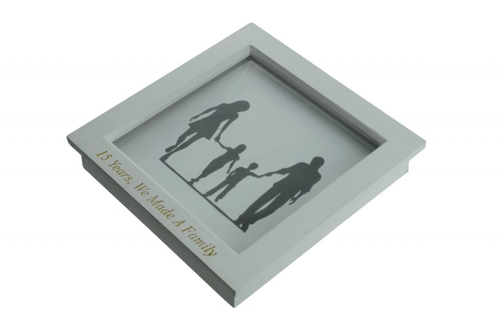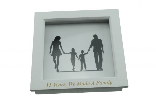 With our “15 Years, We Made A Family” white wooden frame you can celebrate your 15th Anniversary and mark this moment in your life.