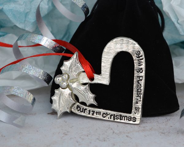 This gift is a unique twist on personalised Christmas decorations, also available in “Our 17th Christmas Together”.