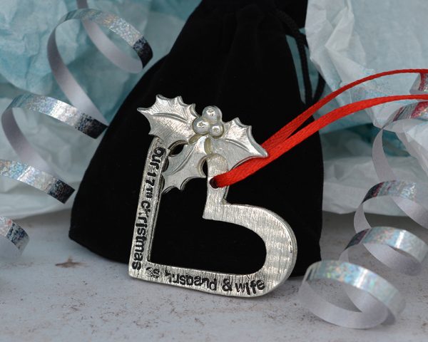Celebrate your seventeenth Christmas together with this stunning hand crafted decoration, each heart is handmade and uniquely stamped.