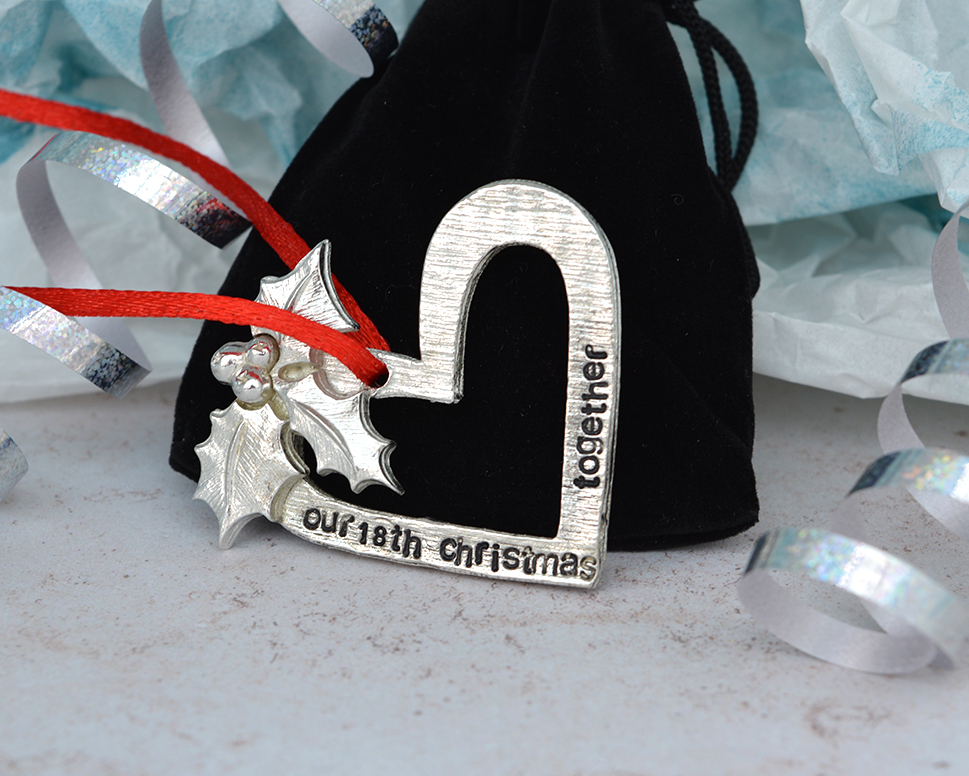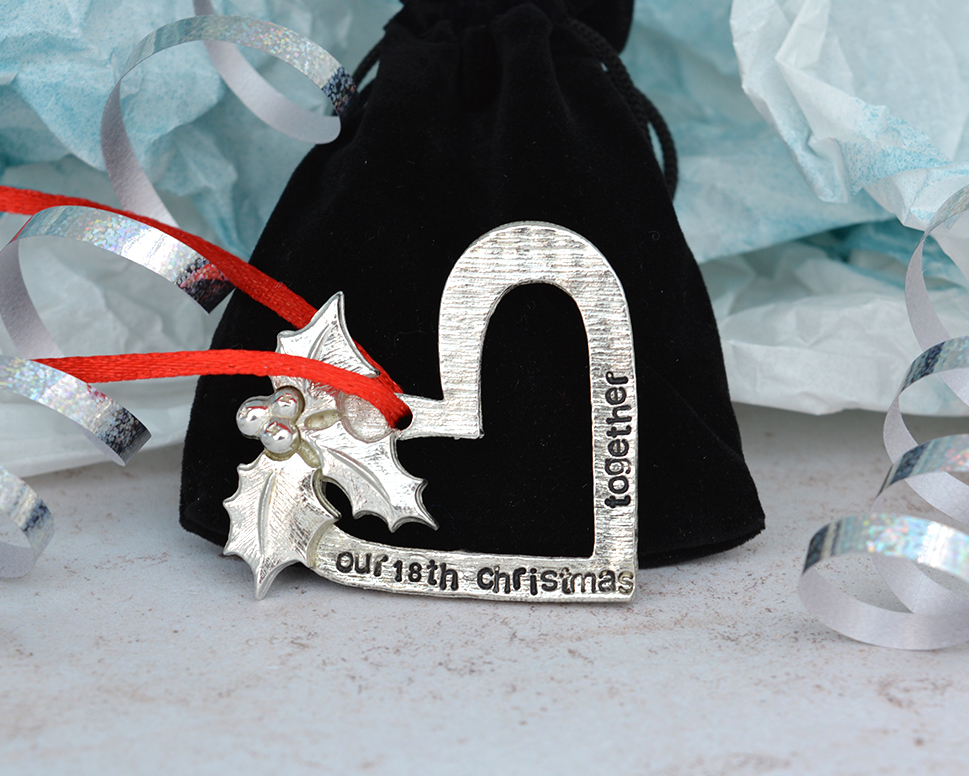 Celebrate your eighteenth Christmas together with this stunning hand crafted decoration, each heart is handmade and uniquely stamped.