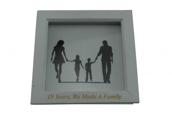 With our “19 Years, We Made A Family” white wooden frame you can celebrate your 19th Anniversary and mark this moment in your life.