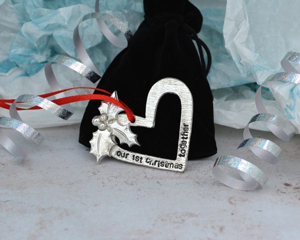 Celebrate your first Christmas together with this stunning hand crafted decoration, each heart is handmade and uniquely stamped.