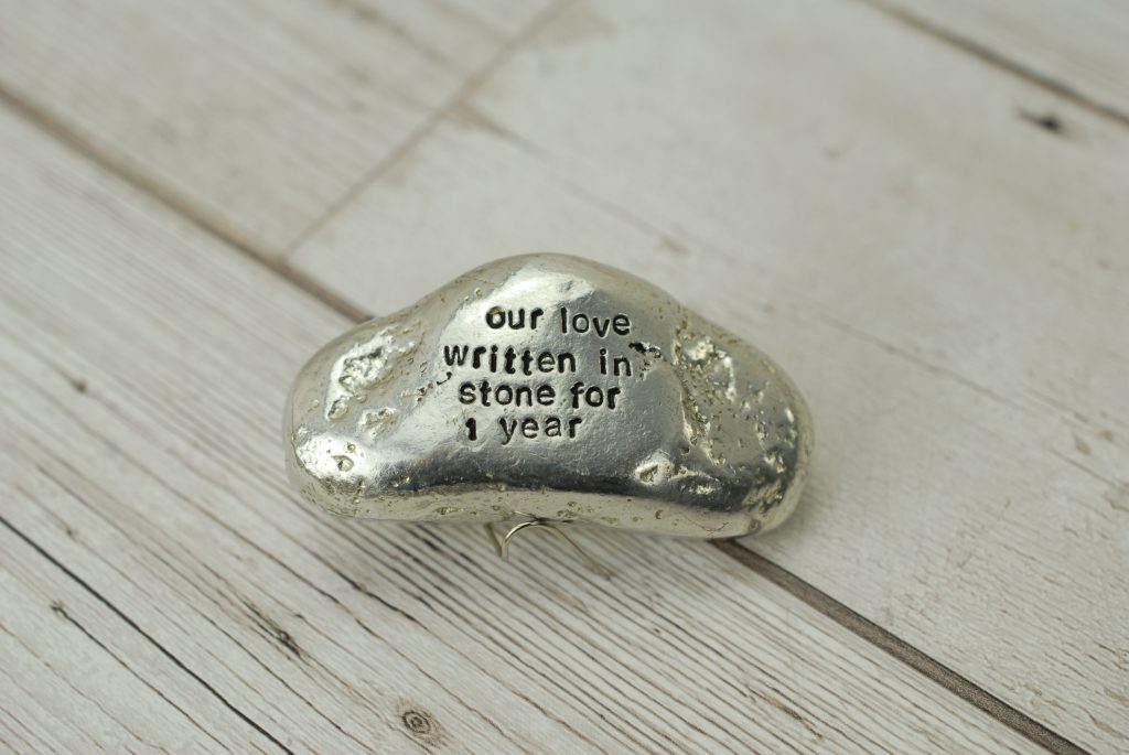 Surprise your partner with a gift with the iconic phrase: ‘Our Love Written in Stone for 1 Year’ engraved.