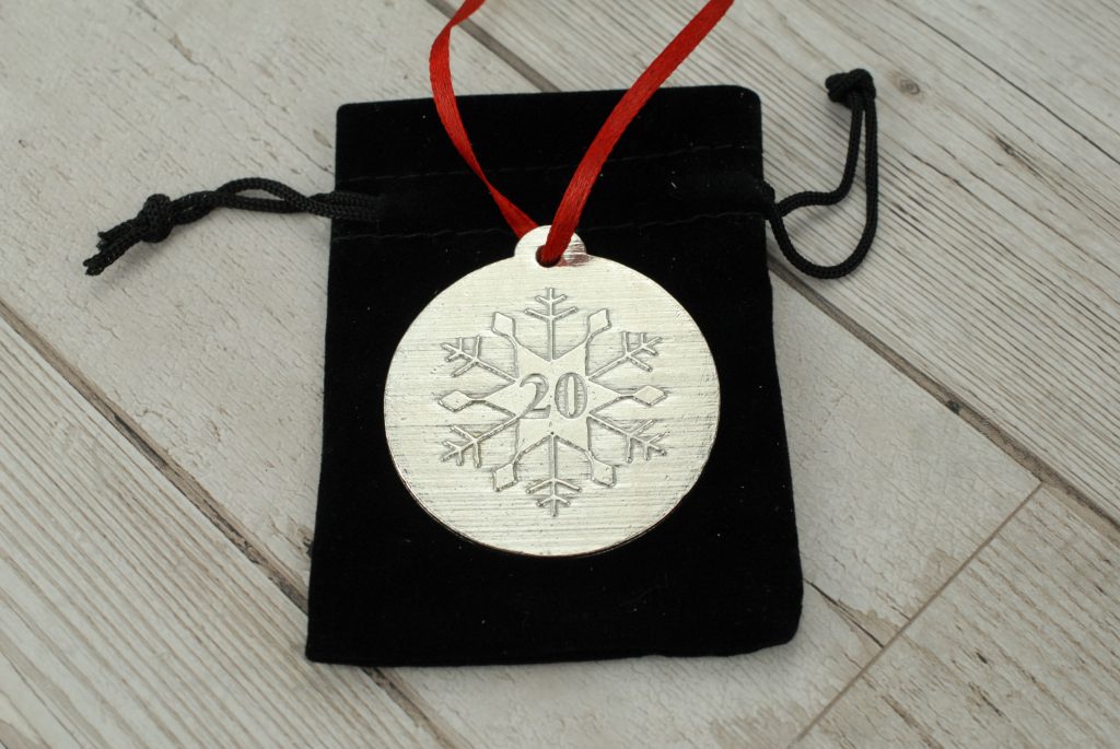 An addition to our Christmas collection includes our snowflake pendant this sparkling decoration is available plain or with the year of your anniversary stamped in the middle.