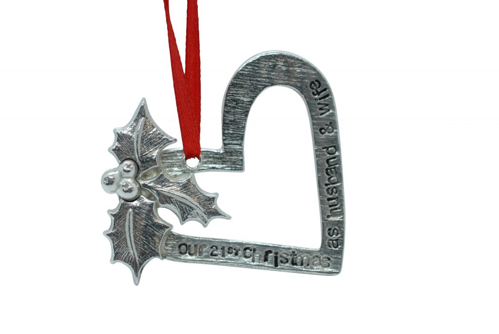 Celebrate your twenty-first Christmas together with this stunning hand crafted decoration, each heart is handmade and uniquely stamped.