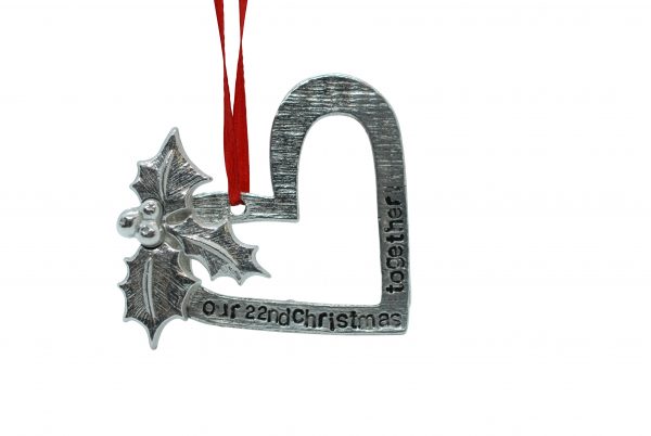 Celebrate your twenty-second Christmas together with this stunning hand crafted decoration, each heart is handmade and uniquely stamped.