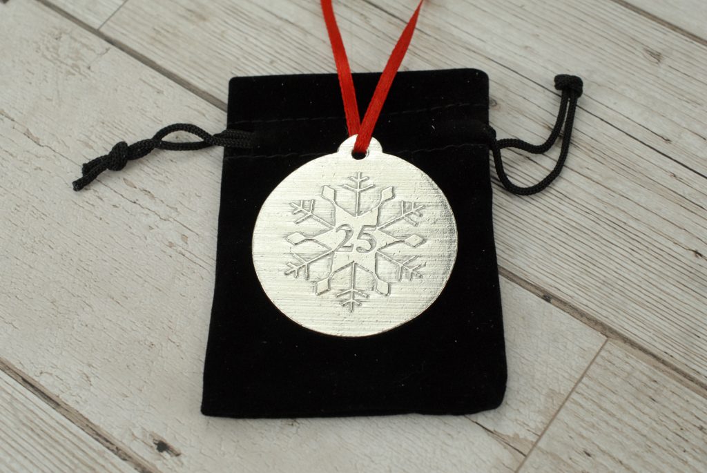 An addition to our Christmas collection includes our snowflake pendant this sparkling decoration is available plain or with the year of your anniversary stamped in the middle.