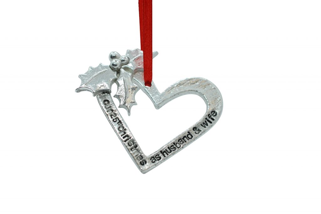 Celebrate your twenty-fifth Christmas together with this stunning hand crafted decoration, each heart is handmade and uniquely stamped.