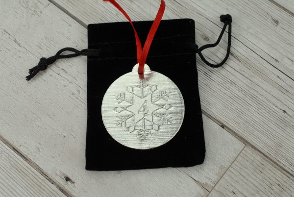 An addition to our Christmas collection includes our snowflake pendant this sparkling decoration is available plain or with the year of your anniversary stamped in the middle.