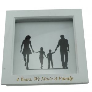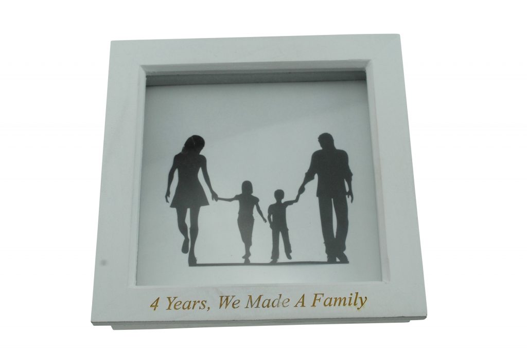 With our “4 Years, We Made A Family” white wooden frame you can celebrate your 4th Anniversary and mark this moment in your life.