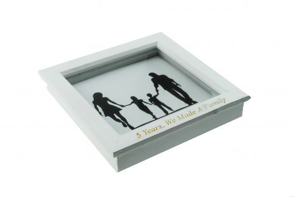 With our “5 Years, We Made A Family” white wooden frame you can celebrate your 5th Anniversary and mark this moment in your life.