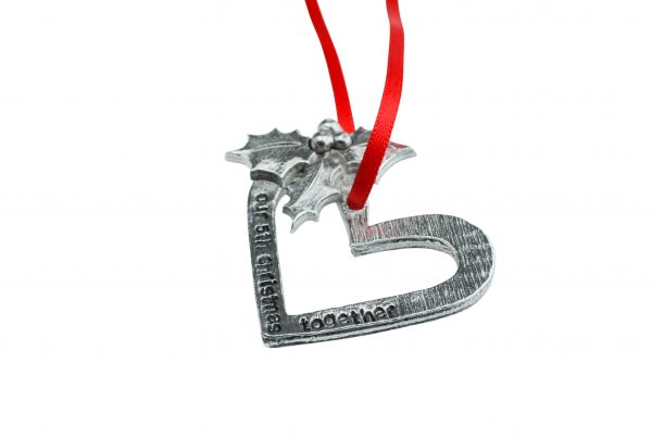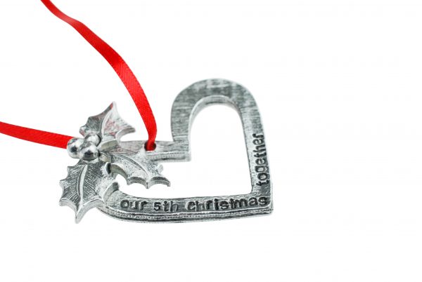 Celebrate your fifth Christmas together with this stunning hand crafted decoration, each heart is handmade and uniquely stamped.