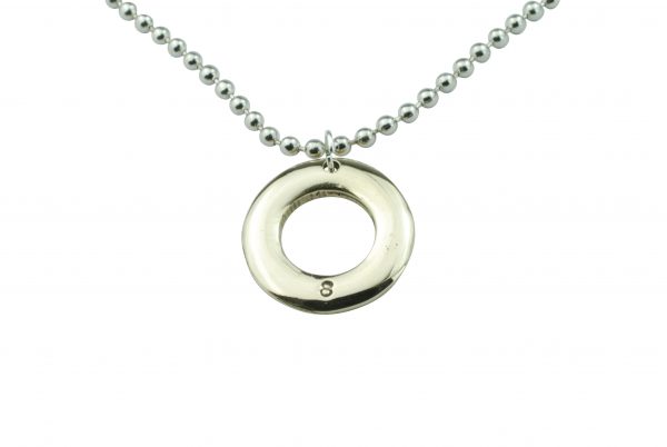 This pendant comes on a 20 inch ball chain and is 20mm x 20mm.