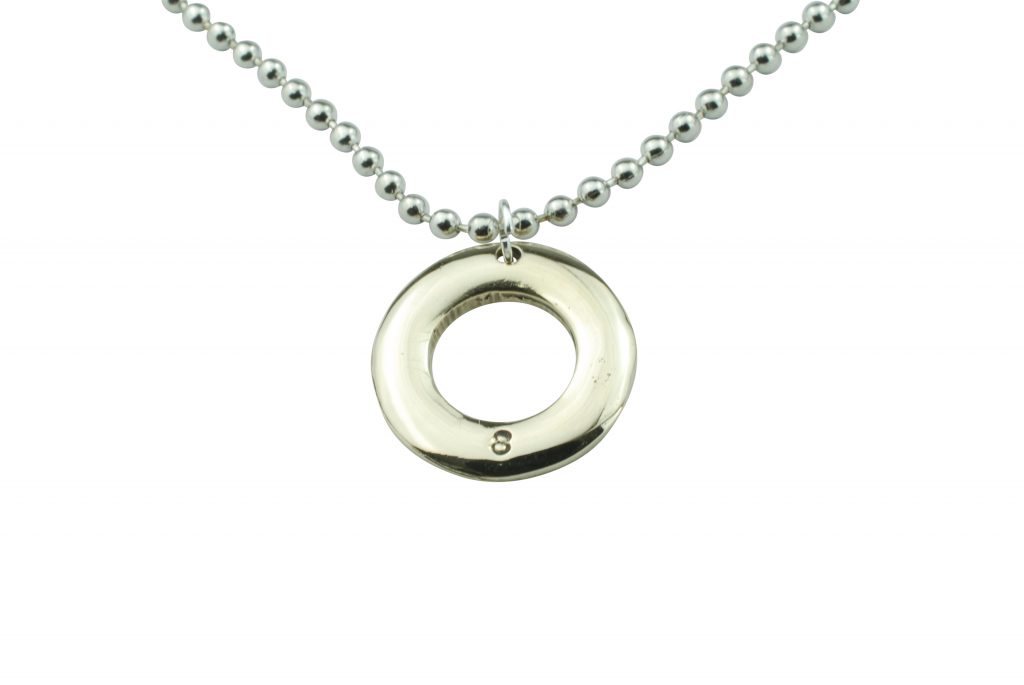 His bronze hoop pendant, a great subtle 8th Anniversary Gift.