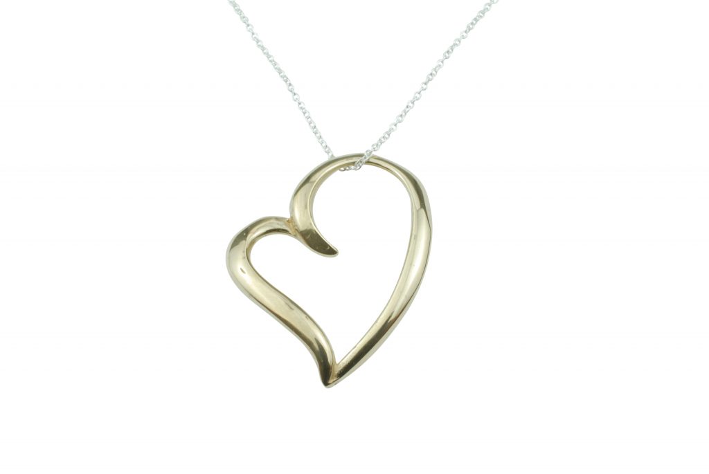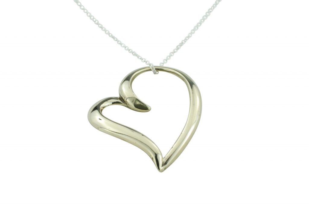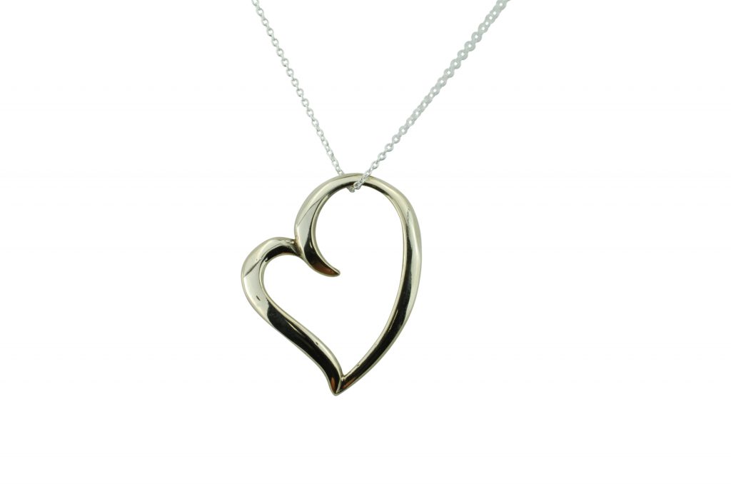 A heart pendant like no other, this stylish ribbon like heart is a beauty worth sharing.