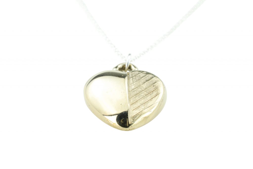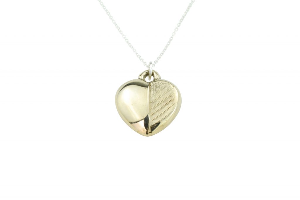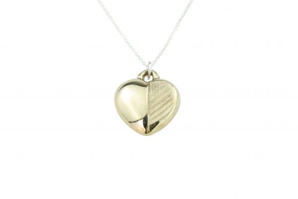 A fun variation on a classic bronze pendant, half of this heart has got some fun stripes for a unique hand sculpted design.