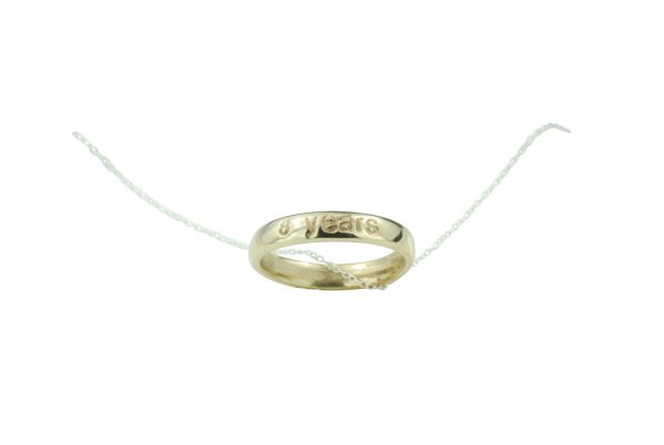 We know that not everybody likes the traditional route of hearts and flowers, so we have a simple bronze ring with 8 years stamped on the side.
