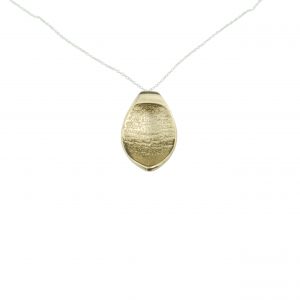 Her pendant comes on an 18 inch sterling silver chain and is 31mm x 17mm, his pendant comes on a 20″ brown leather cord and is 31mm x 17mm.