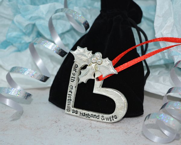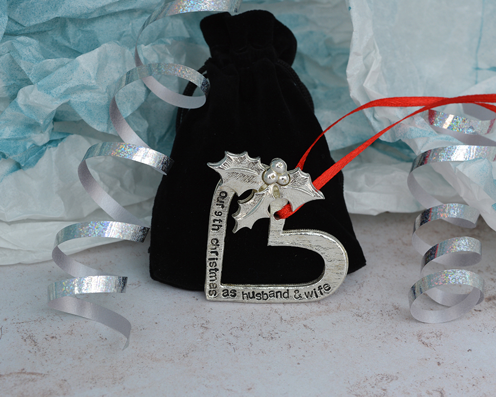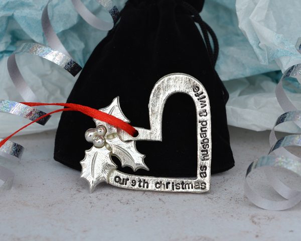 This gift is a unique twist on personalised Christmas decorations, also available in “Our 9th Christmas Together”.