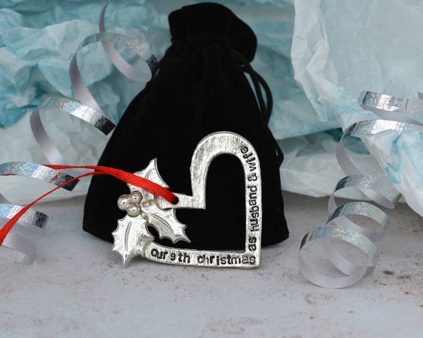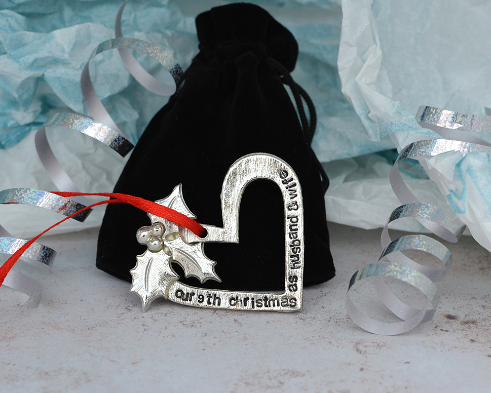 Celebrate your ninth Christmas together with this stunning hand crafted decoration, each heart is handmade and uniquely stamped.